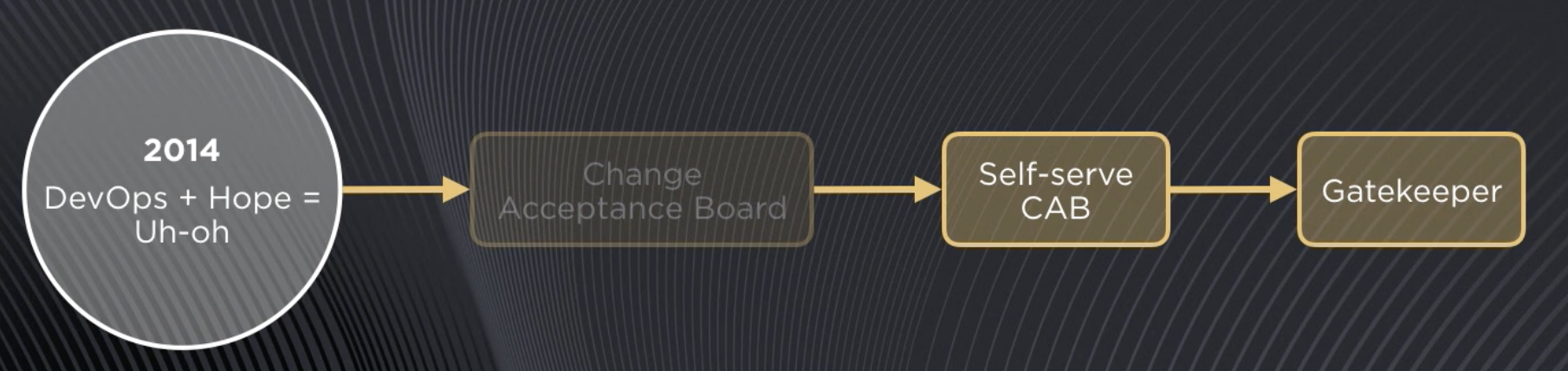 The change acceptance board (CAB) was one branch of the reliability journey from DevOps Takes Practice: How New Relic Evolves Reliability. Matthew Flaming & Beth Adele Long at New Relic's 2017 FutureStack conference in London. youtube ![]()