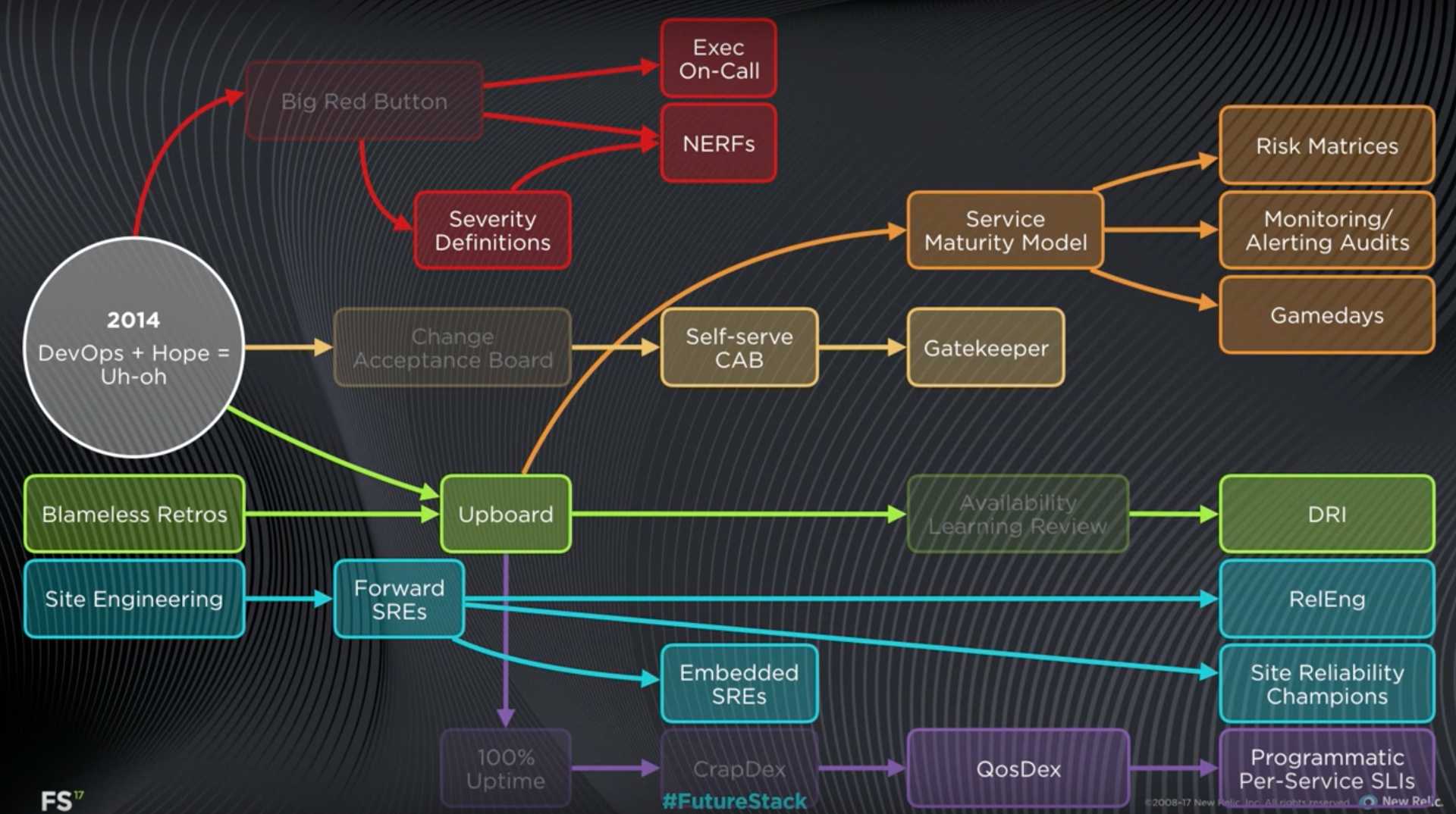 New Relic reliability evolutionary tree, 2014-2017