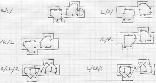 I adopted the notation from the author... especially using `/` to denote changing the vertical plungers. I sketched the permutations from six sequences of movement which return all the plungers to their initial positions.